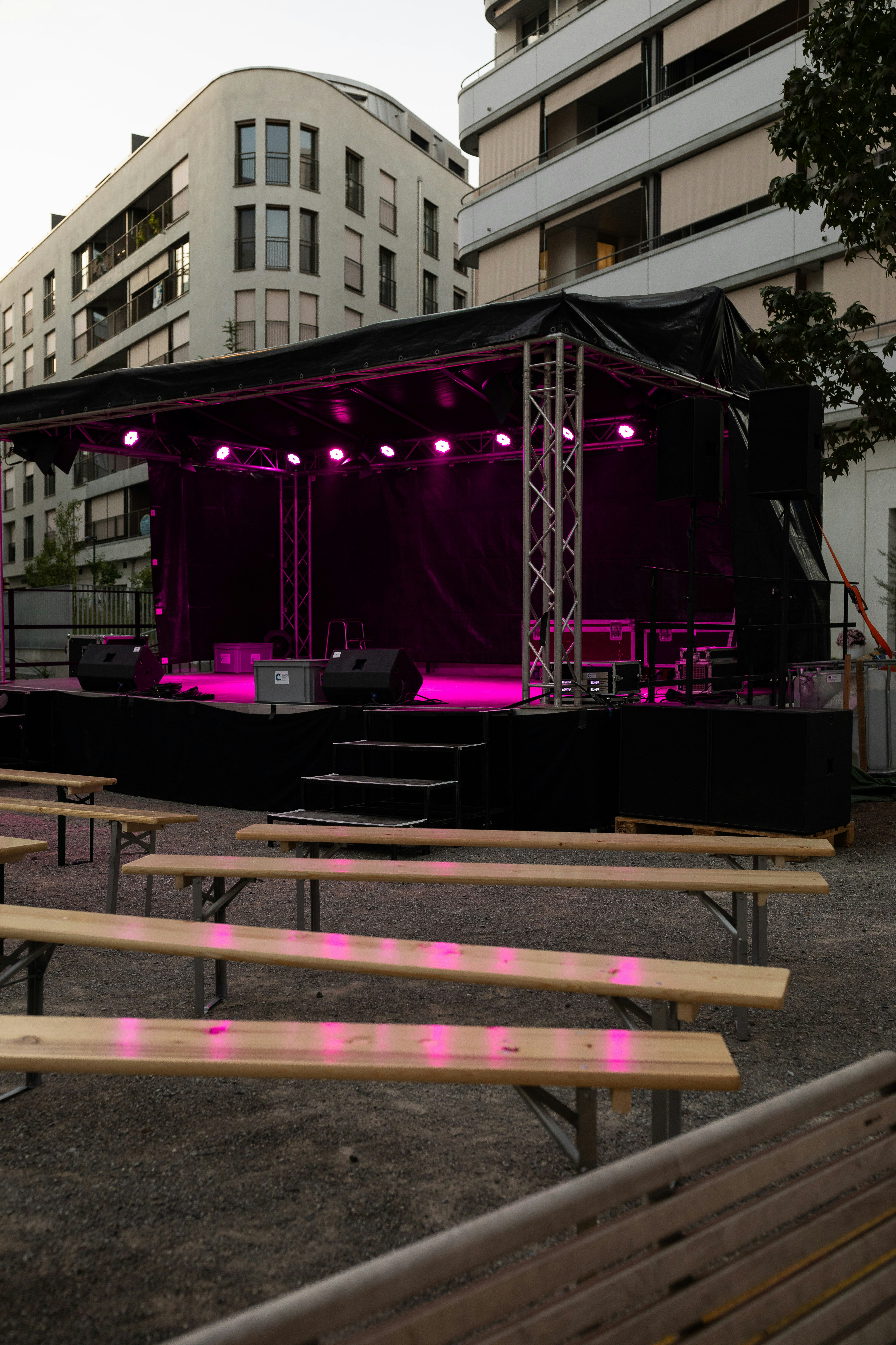 Стационарные усиленные платформы — применяются для тяжёлого оборудования и концертных нагрузок; часто имеют усиленный металлокаркас и возможность подведения инженерных коммуникаций.